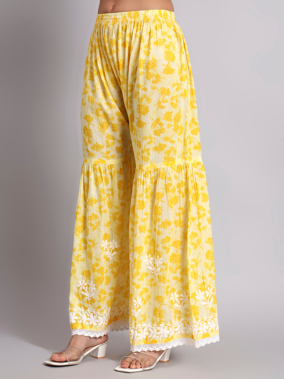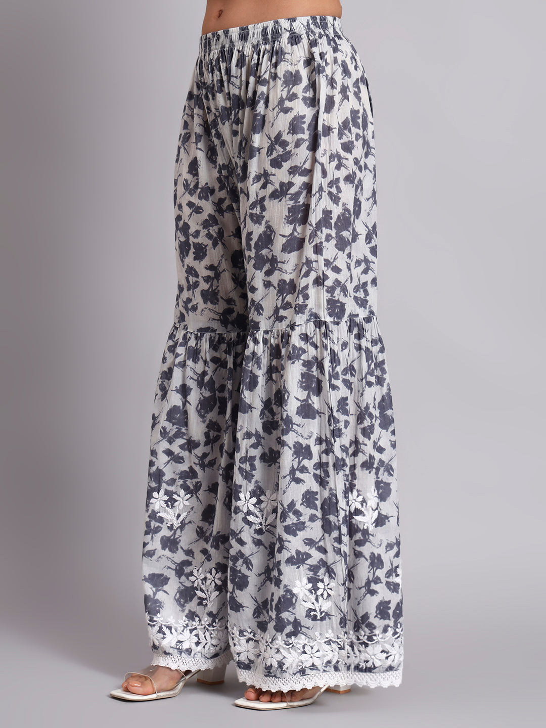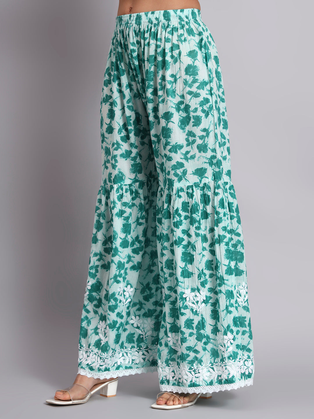 Hand Embroidered Cotton Mulmul Chikankari Kurta ShararaSet ,has a Round Neck, three-quarter Sleeves, embroidered detail,Chikankari