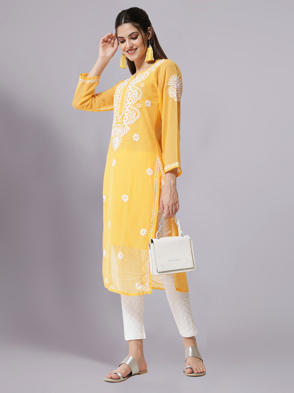 Introducing our stunning Georgette Chikankari Kurta collection! Elevate your style with these graceful and timeless pieces that are sure to make a statement. Crafted with premium Georgette fabric and adorned with intricate Chikankari embroidery, these Kurtis offer a perfect blend of sophistication and charm.