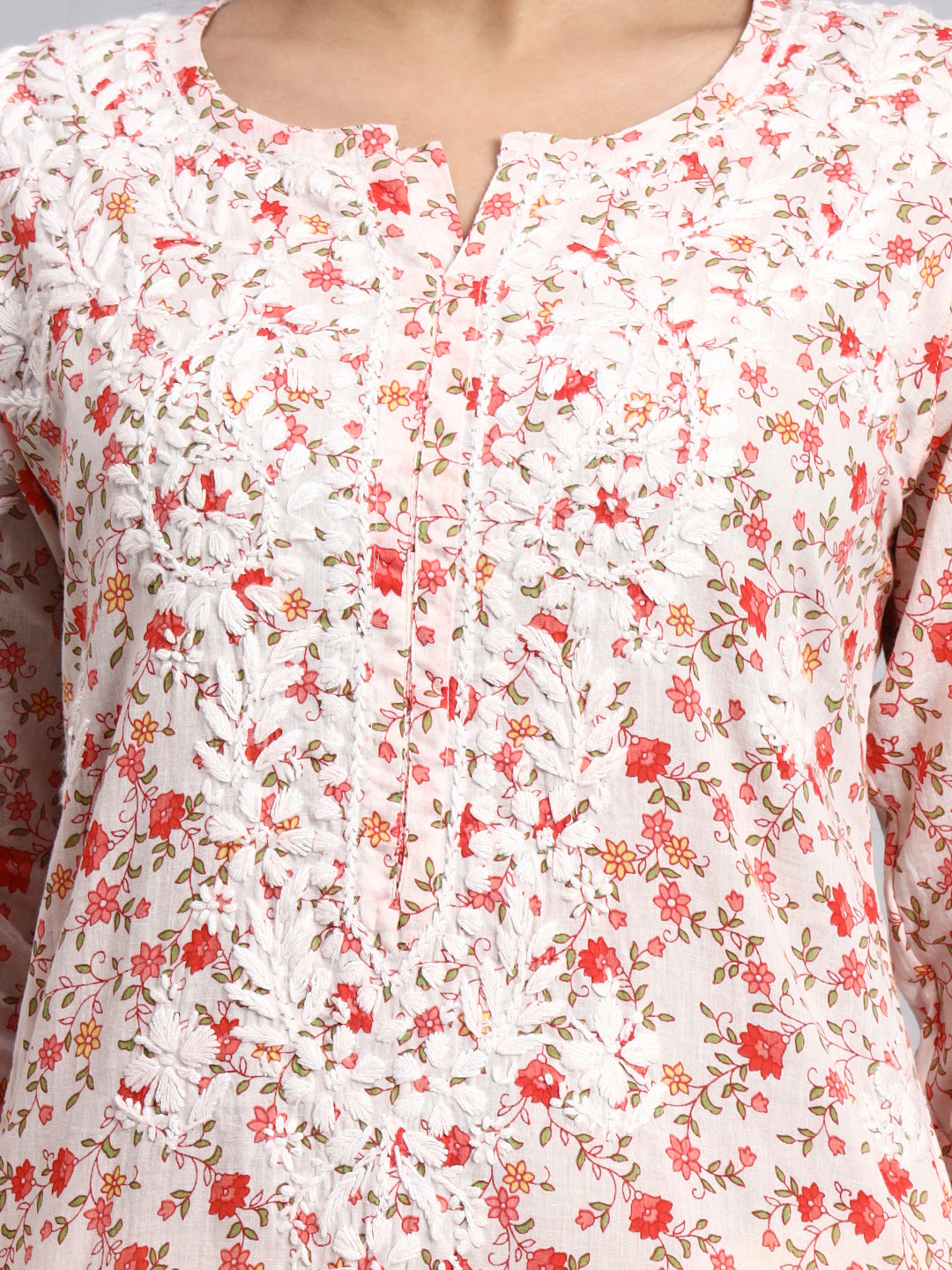 Hand Embroidered Chikankari Mulmul Printed Straight Kurta- PC4105