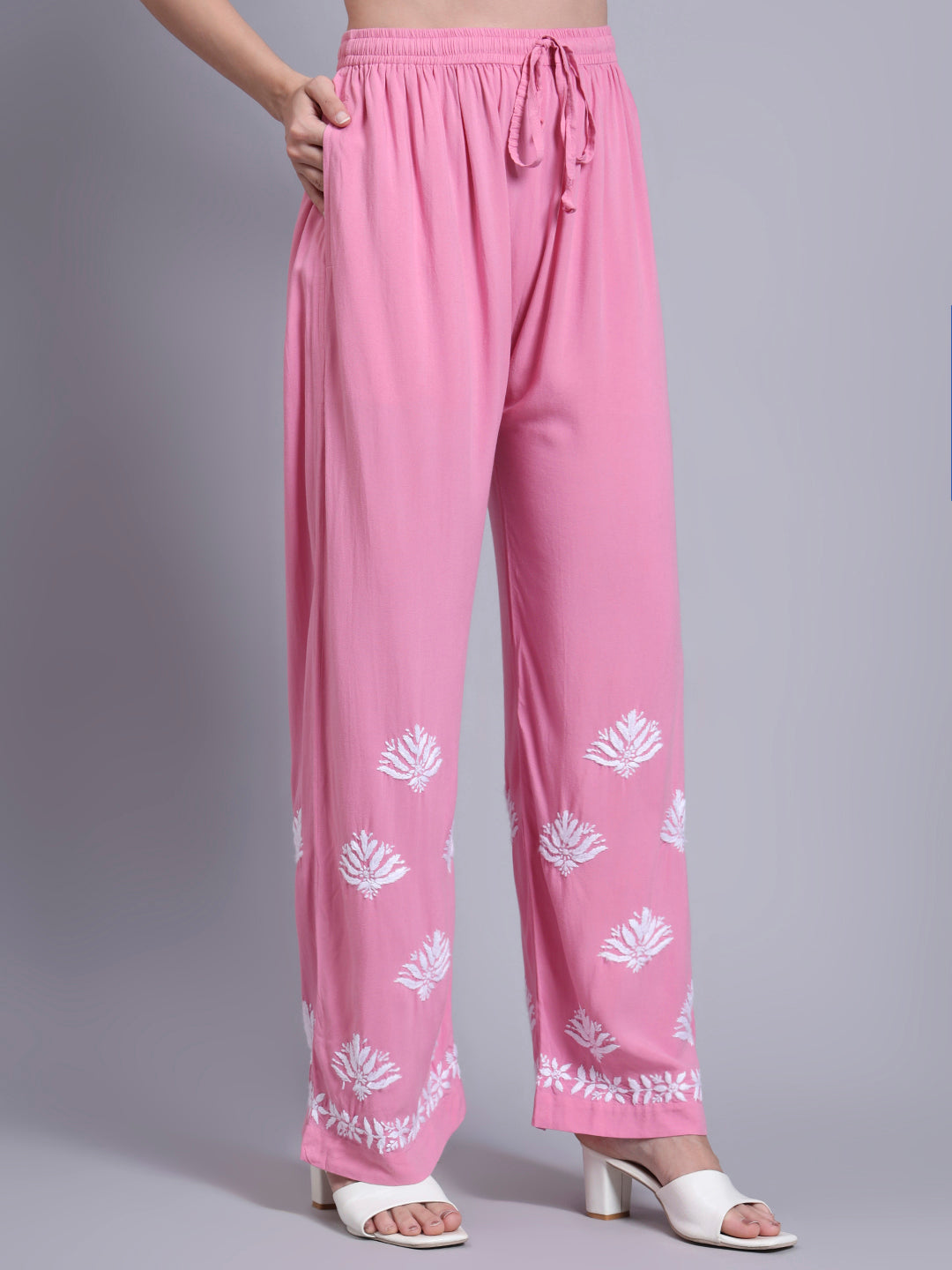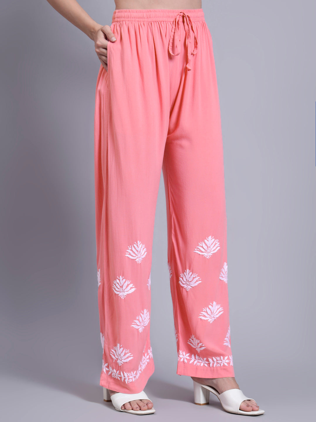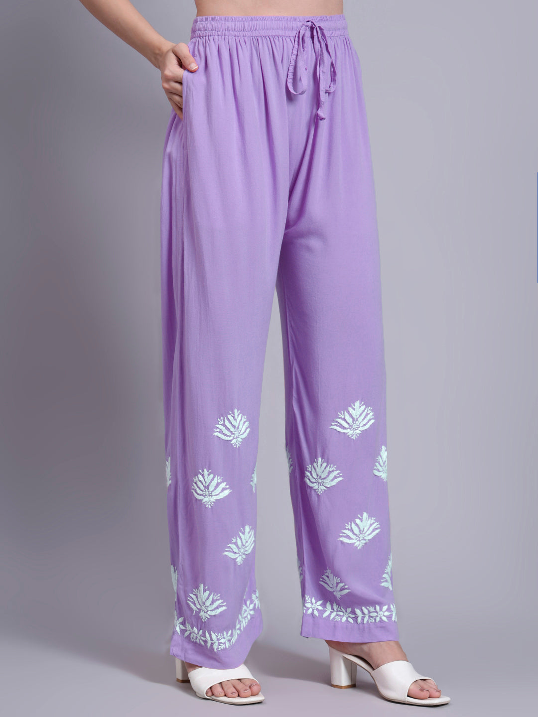 Hand Embroidered Cotton Chikankari kurtaset ,has a round neck,three-quarter Sleeves, embroidered detail,Chikankari Rayon