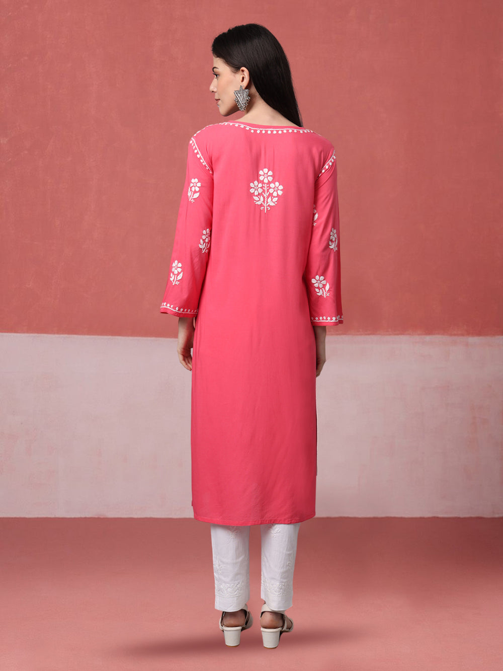 Hand Embroidered Chikankari Modal Straight Kurta- PC4013 Carrotpink